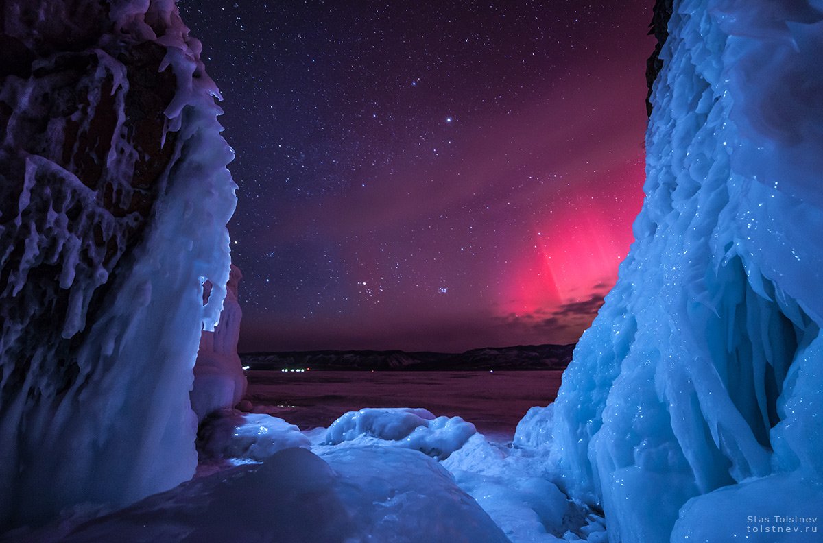 Совершенно случайно мне удалось снять северное сияние на Байкале. Было это в ночь с 17-18 марта 2015 года. В ту ночь я собирался снимать тайм-лапс звездного неба. Выставил свет на локации, установил камеру на слайдер, запустил съемку, и пошел спать в палатку. В 2 часа ночи, когда съемка завершилась, и я пришел забирать камеру, то увидел какое-то розовое свечение на горизонте. Я очень удивился этому, тк никаких населенных пунктов в том направлении нет на тысячи километров. И лишь утром я прочел на телефоне в новостях, что в ту ночь было очень сильное северное сияние, что даже в крупных городах, как Москва люди умудрялись его заснять. В моем видеоролике о Байкале можно увидеть фрагмент этого тайм-лапса: https://www.youtube.com/watch?v=mfKCKJOFVLY