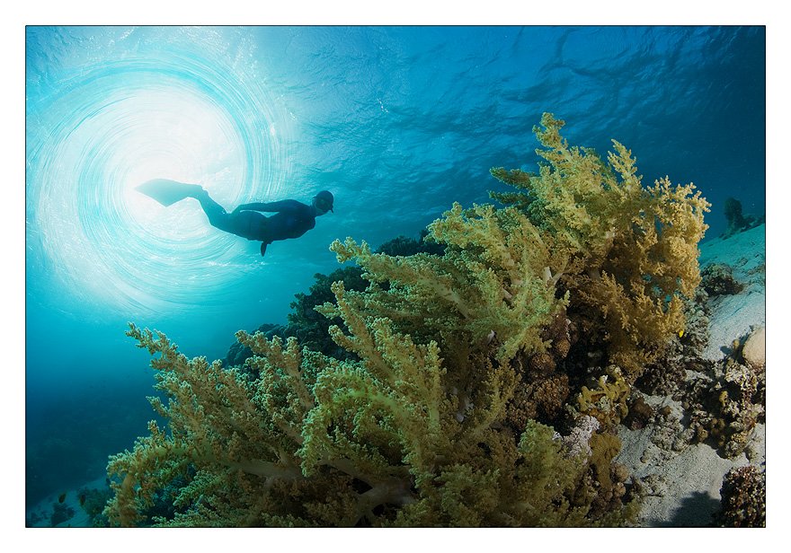 Даже под водой Египетское солнце остается настолько ярким, что ты долго можешь не замечать в контровом свете плывущего к тебе человека...