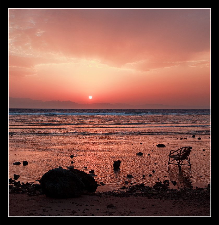 Вечером отлив, и часто люди сидят на берегу, кто на чем и просто смотря на море, а потом ... потом наступает утро ...