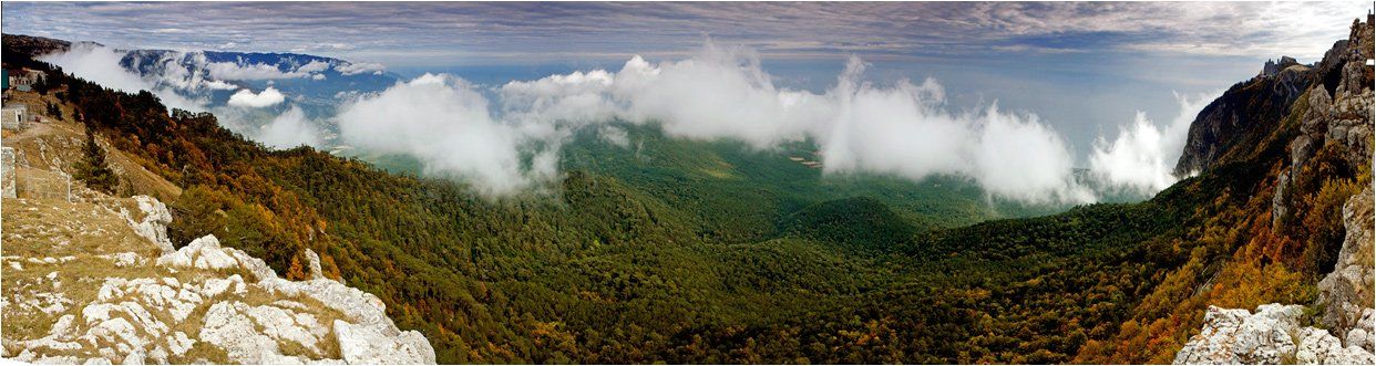 В PTGui. Потом в фш правки искажений.
