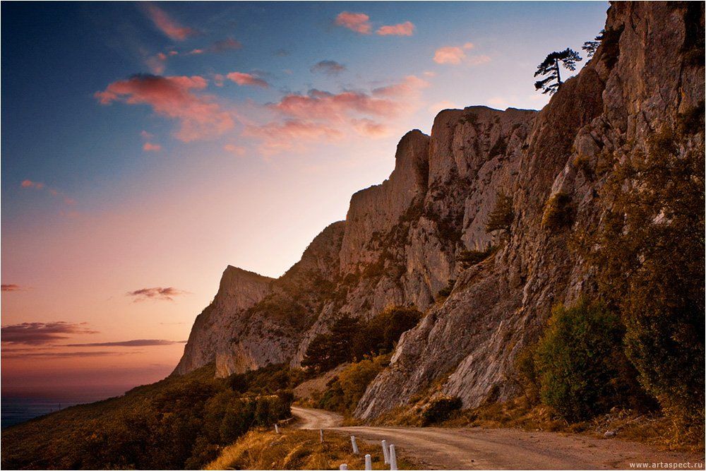 Указал на карте: Крым, близь Фороса. Вдоль побережья идут две дороги: новая и старая. Большинсто, есессна, пользуются новой, хорошей и удобной дорогой, не зная что чуть выше, под обрывами гор, параллельно ей идет старая дорога, гораздо более живописная. На старую много отворотов с новой дороги есть: любое в принципе ответвление в сторону гор.