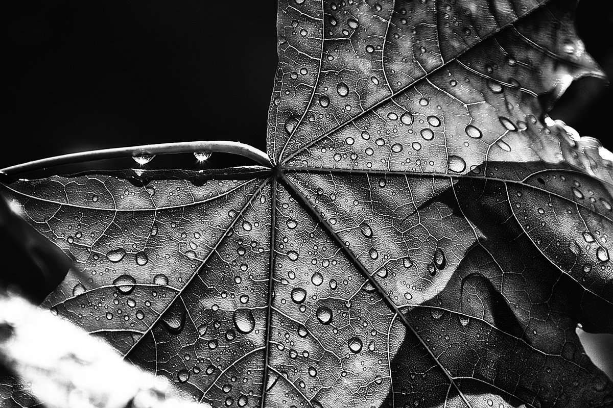чб фото, листья, дождь, Vera Trandina
