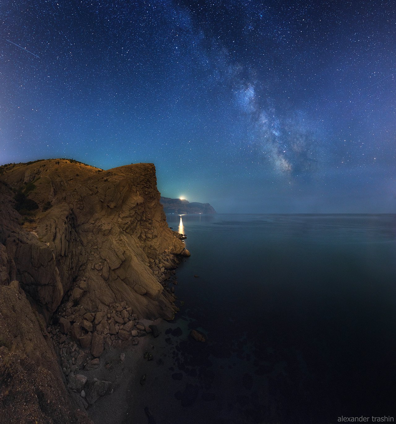 Пустующий пляж Шайтан -Дере на побережье Балаклавы в летнюю ночь, Крым.