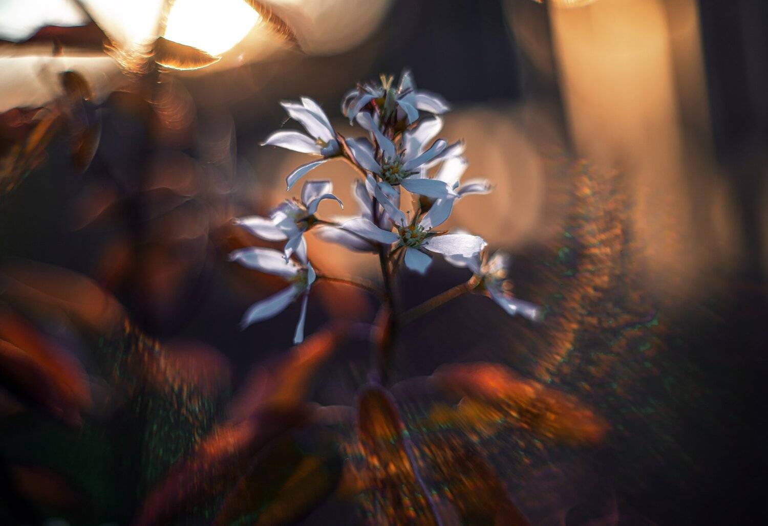 весна вечер закак лучи блики солнце цветы ирга