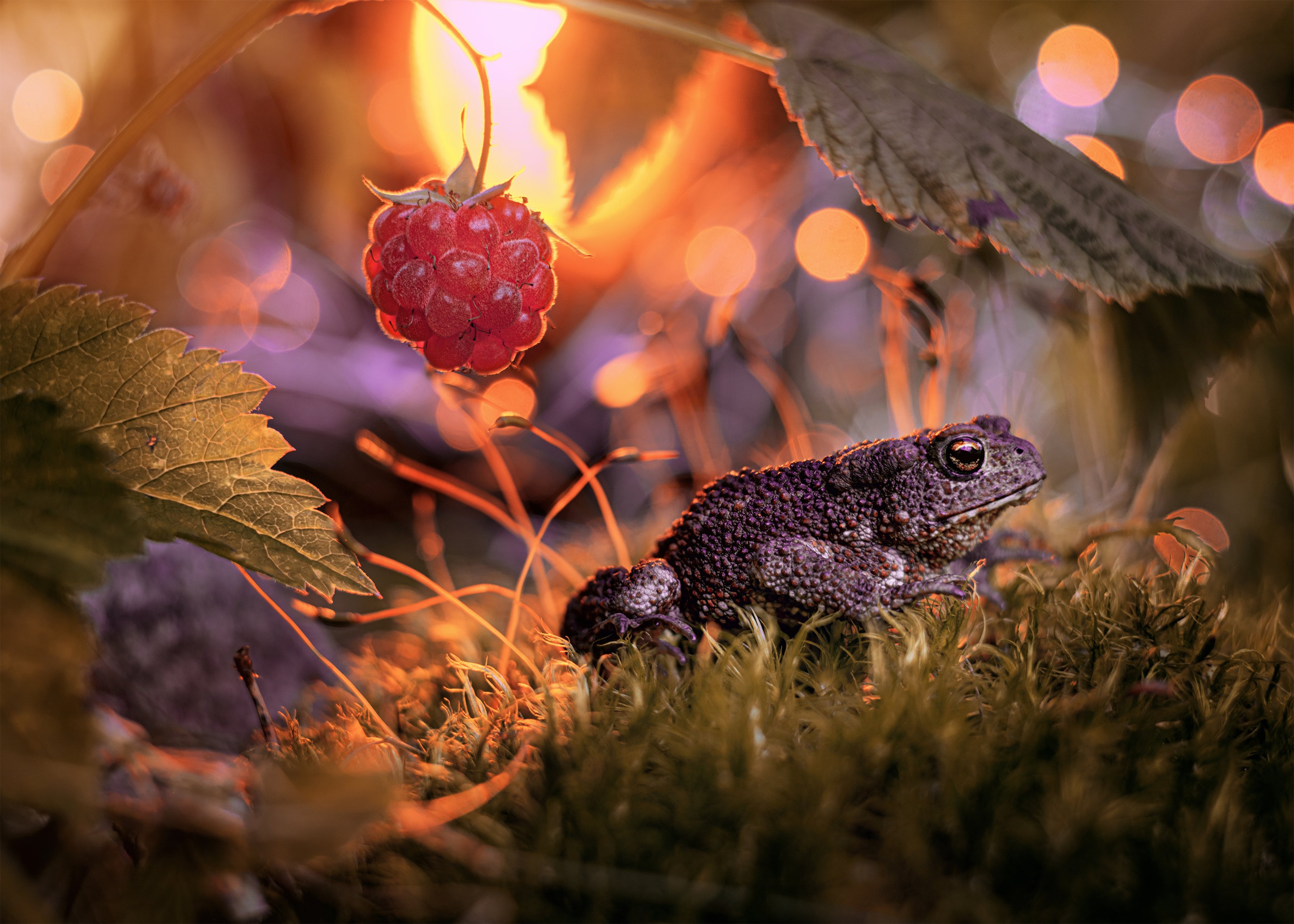 жаба закат малина лес ягоды красота боке макро, Анастасия Третьякова