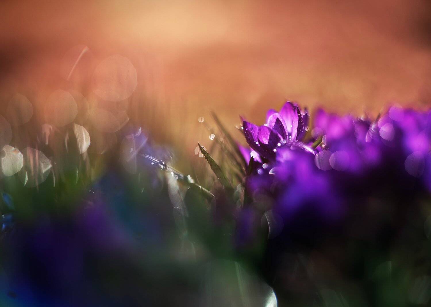 цветы весна крокусы пролески природа красота боке свет закат гелиос