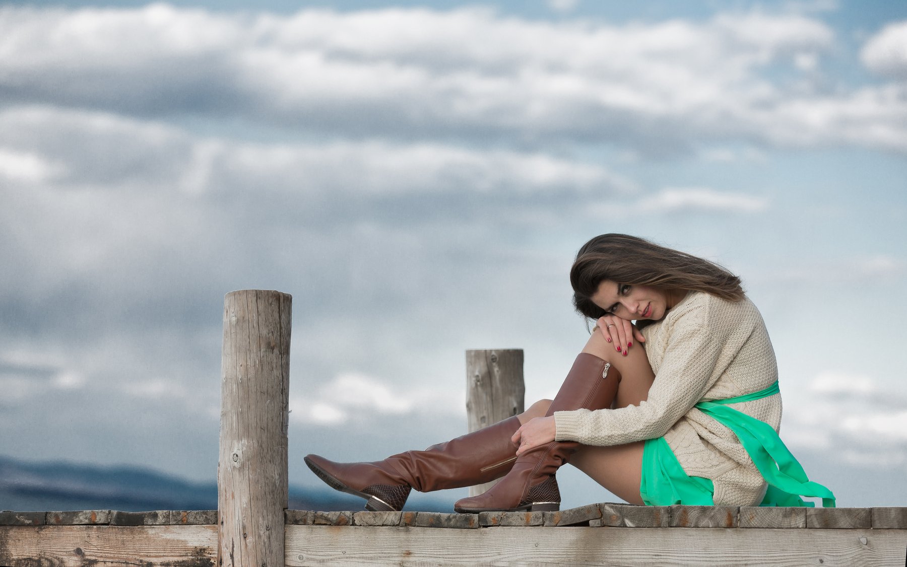 красивая   платье   девушка   волосы   у моря     портрет   красивой   свитер, Треьяков Денис