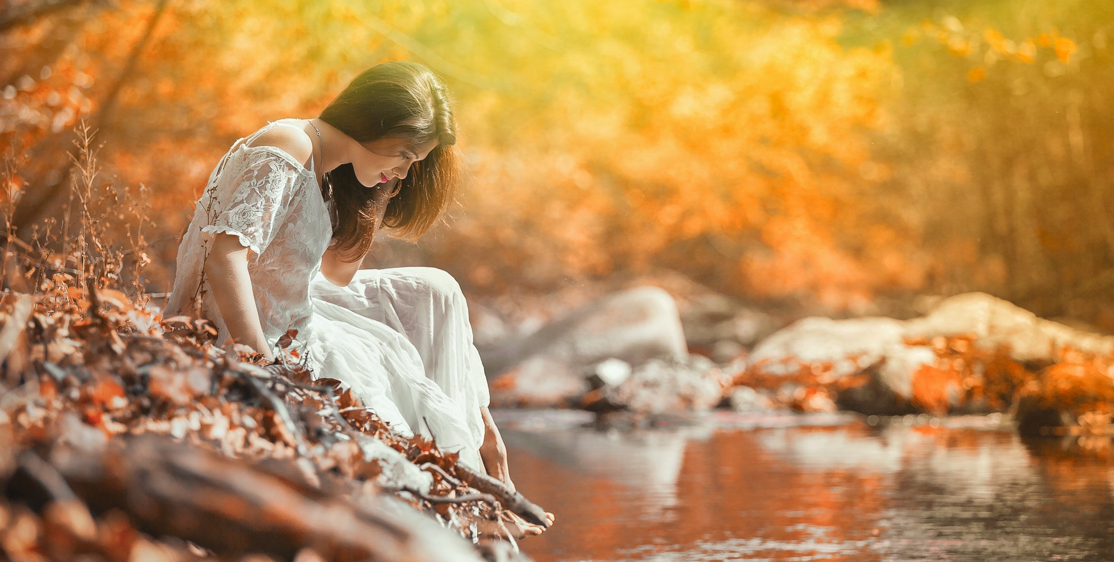 #расивая, , #осень, #, речка, #цветокоррекция, , #платье, #ораньжевый, Треьяков Денис