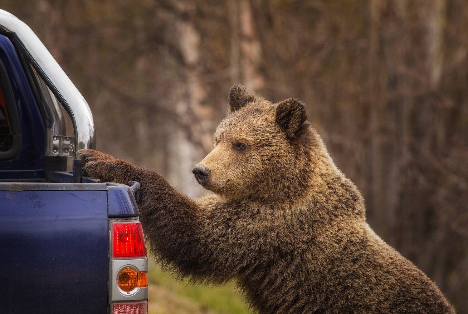 Видимо с причудами погоды, в лесу 1го июня ещё лежит снег,медведи выходят прям в город,машин и людей не бояться,что может привести к не поправимой трагедии