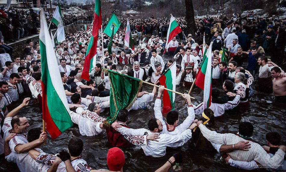 Прословутото мъжко хоро в ледените води на Тунджа- Йордановден, Калофер 2013/ The famous male horo dance in the icy water of river Tundja- Jordan name`s day, Kalofer 2013