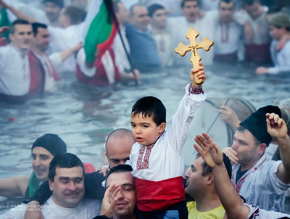 The famous male horo dance in the icy water of river Tundja- Jordan name`s day, Kalofer 2014- author