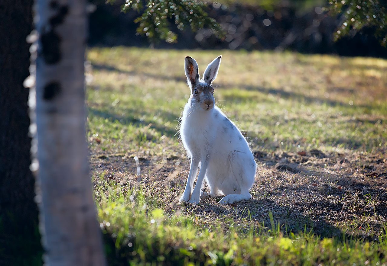 ...каждый участок заячьего тельца меняет волосы при строго определенной, так сказать, любимой, температуре воздуха. Например, осенью наружная часть ушей меняет цвет при температурном диапазоне от +6° до -2°, а внутренняя - чуть раньше, когда на улице немного теплее и светлее...