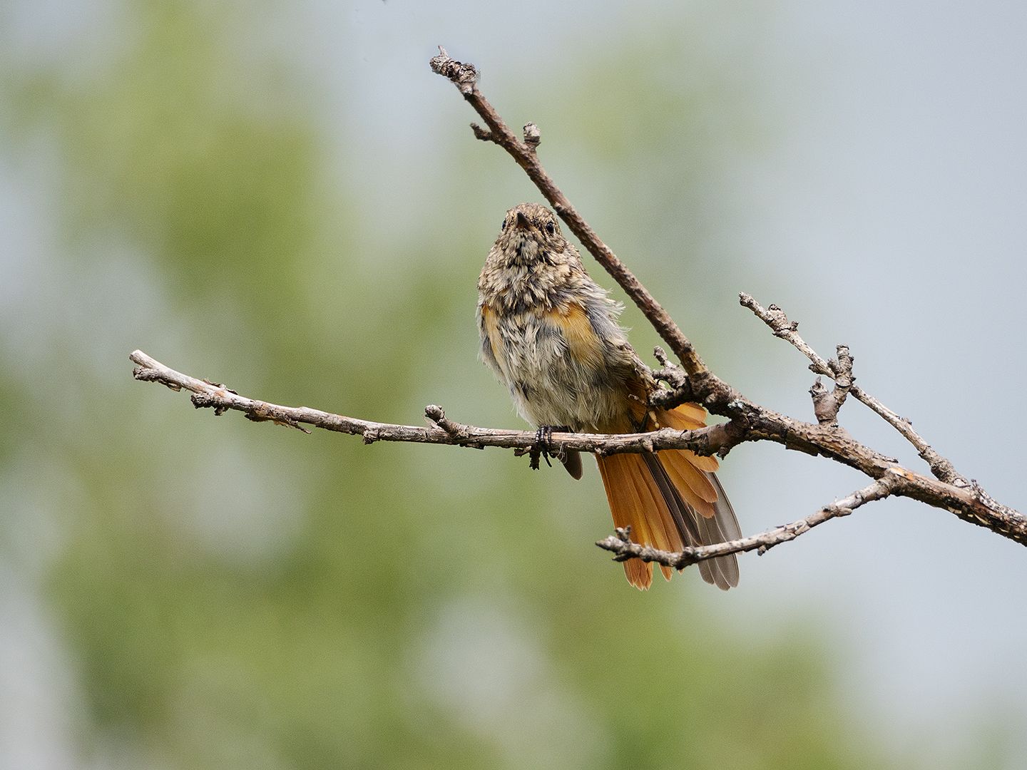На фото уже подростающий птенец Горихвостки. Он теряет свои пёстрые детские перья и помаленьку превращается во взрослую птицу. И уже скоро , или не очень скоро - долгий путь на зимовку в дальние страны.