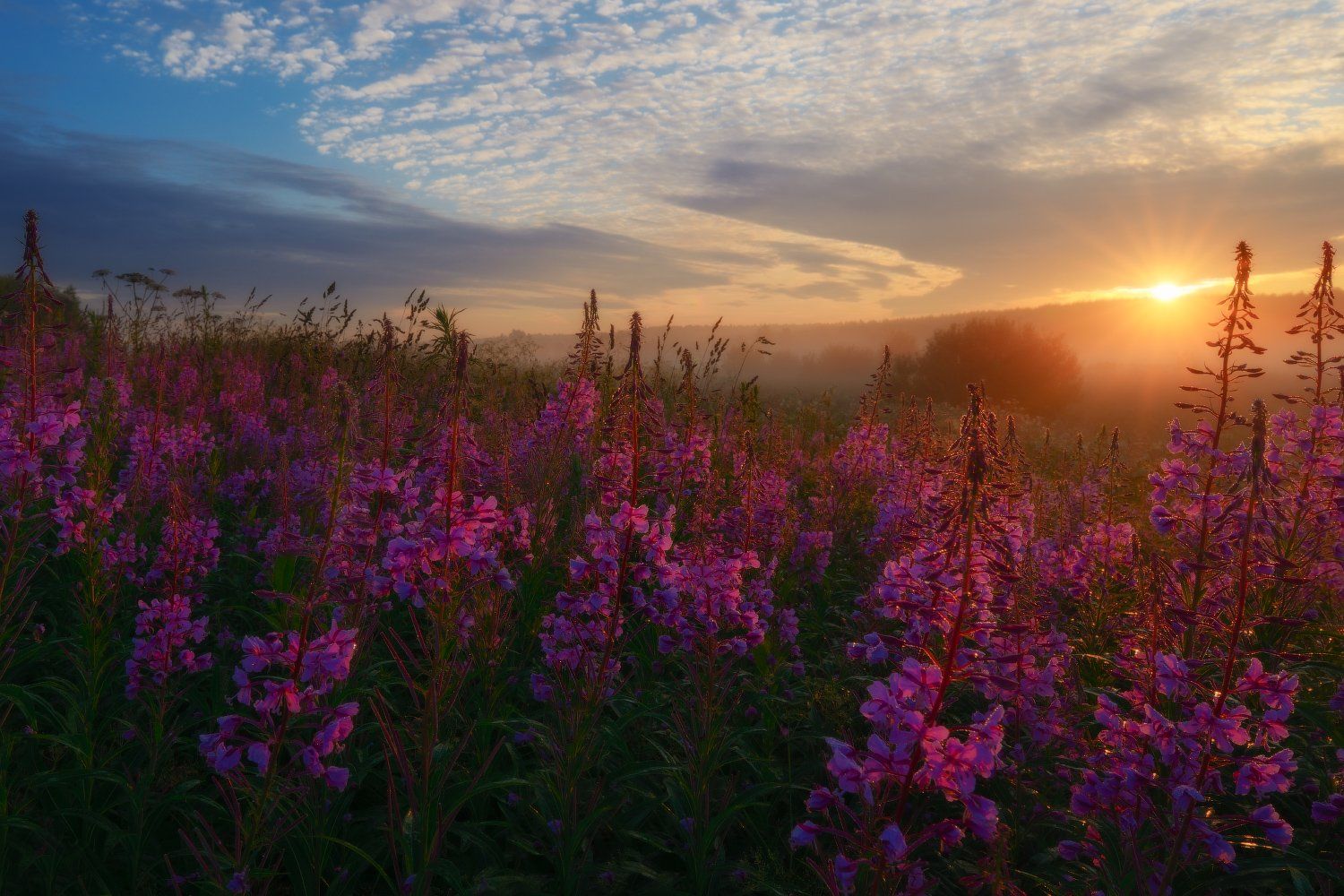 Восхищает Иван-чай фиолетовым нарядом - от Души пей,не скучай,где и Солнышко там рядом.Уйдёт поле в край небес,где незыблемы просторы,возбуждая интерес и людские разговоры...