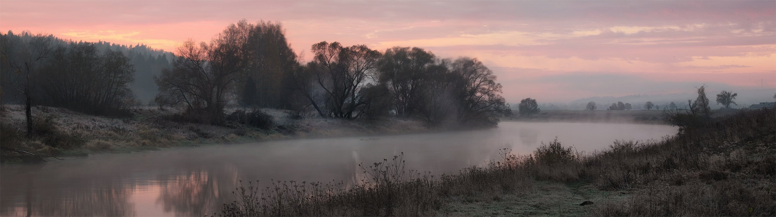 утро, туман, река, иней, Сергей