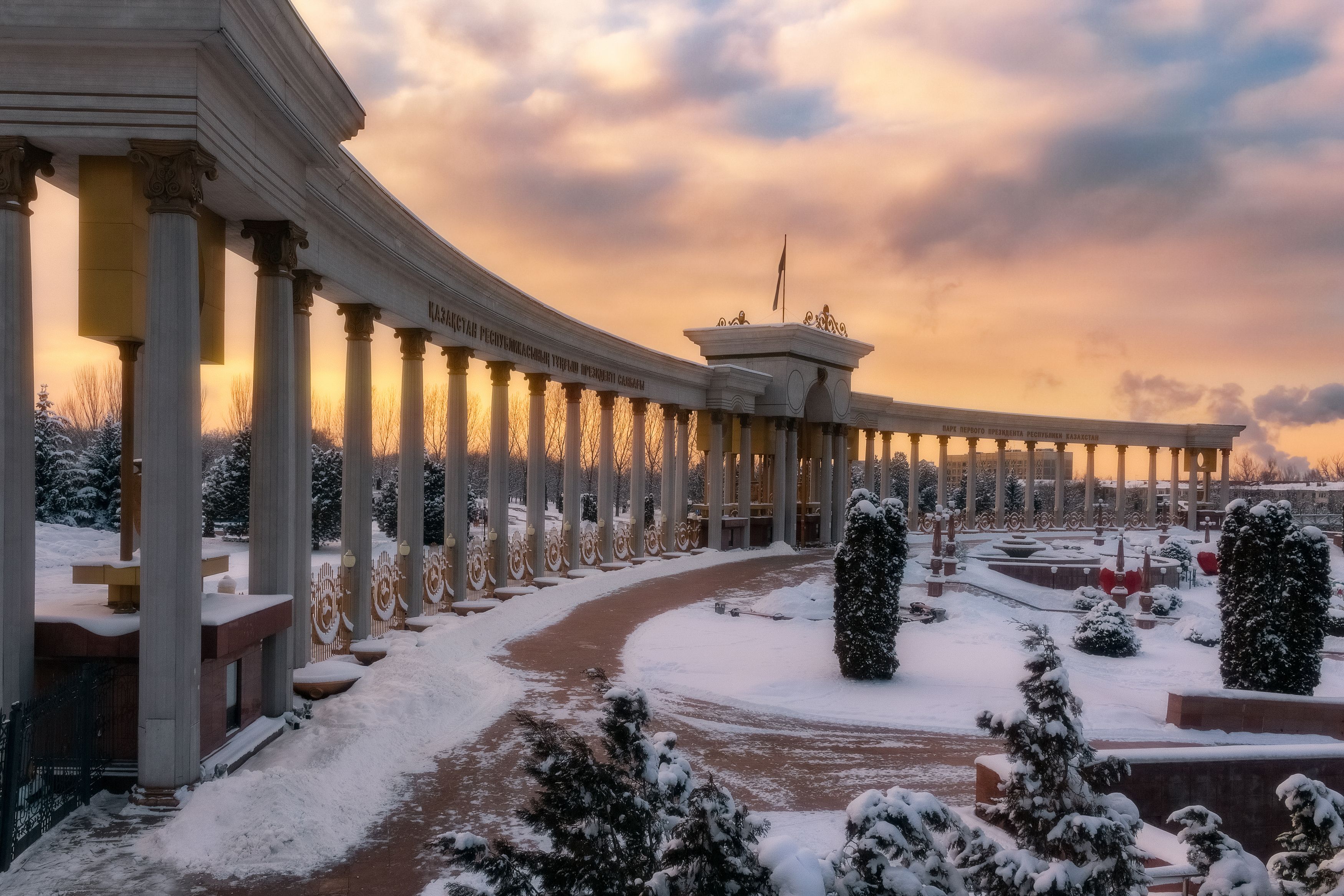 город парк архитектура вечер зима небо облака арка колоннада снег, Еремеев Дмитрий