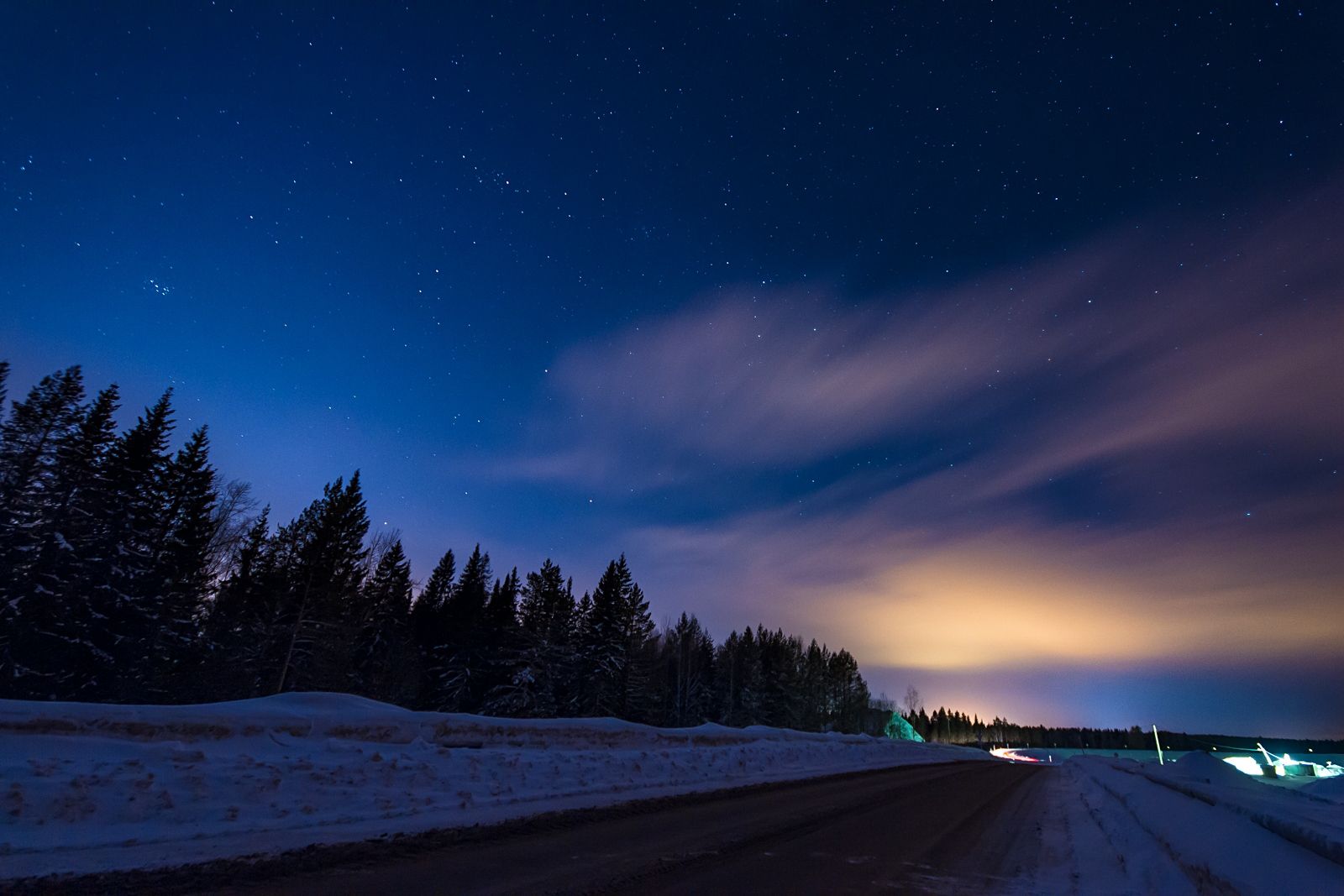 ночьзиманебозвездыдорогаоблака
