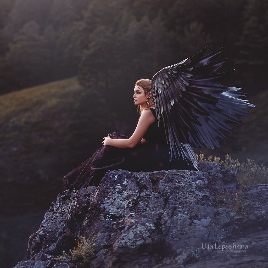 женский портрет индивидуальная фотосессия черные крылья темный ангел фотограф чита, Юлия Лепёшкина