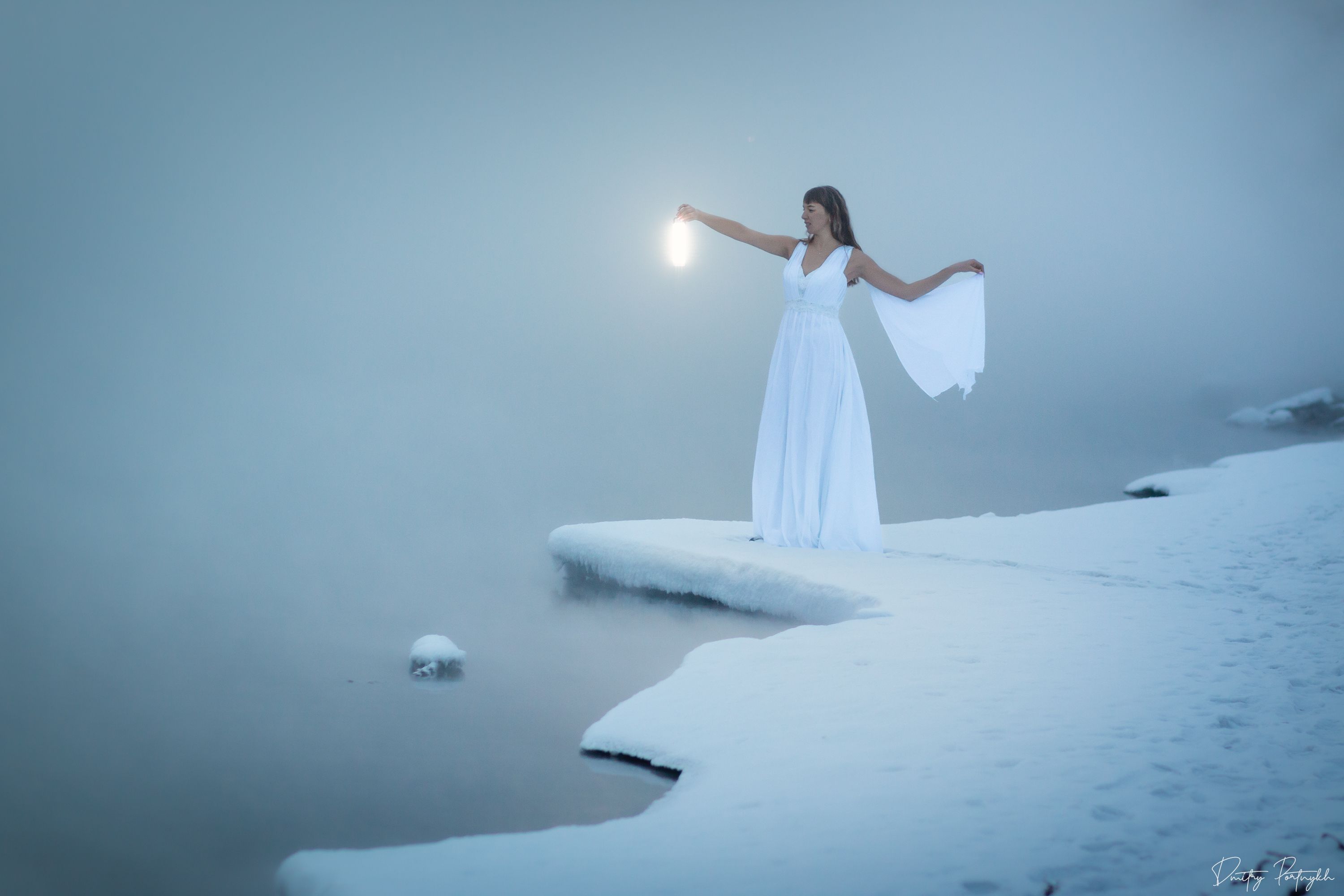 туман, зима, река, мороз, фонарь, портрет, постановочная фотография, платье, девушка, чита, забайкальский край, Портных Дмитрий