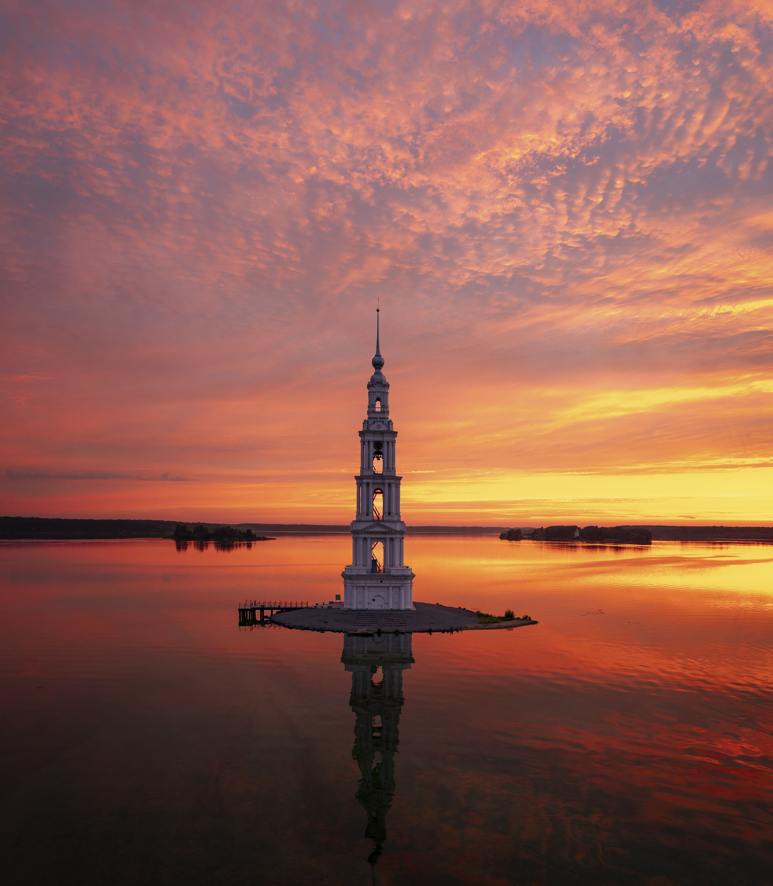 Что то с колокольней перестарались высветлять. Понятное дело что отражение всегда темнее. Но не на стока. Явно бросается в глаза пересветление колокольни. Пожар красок на дальнем плане и особнно справа тоже не очень.