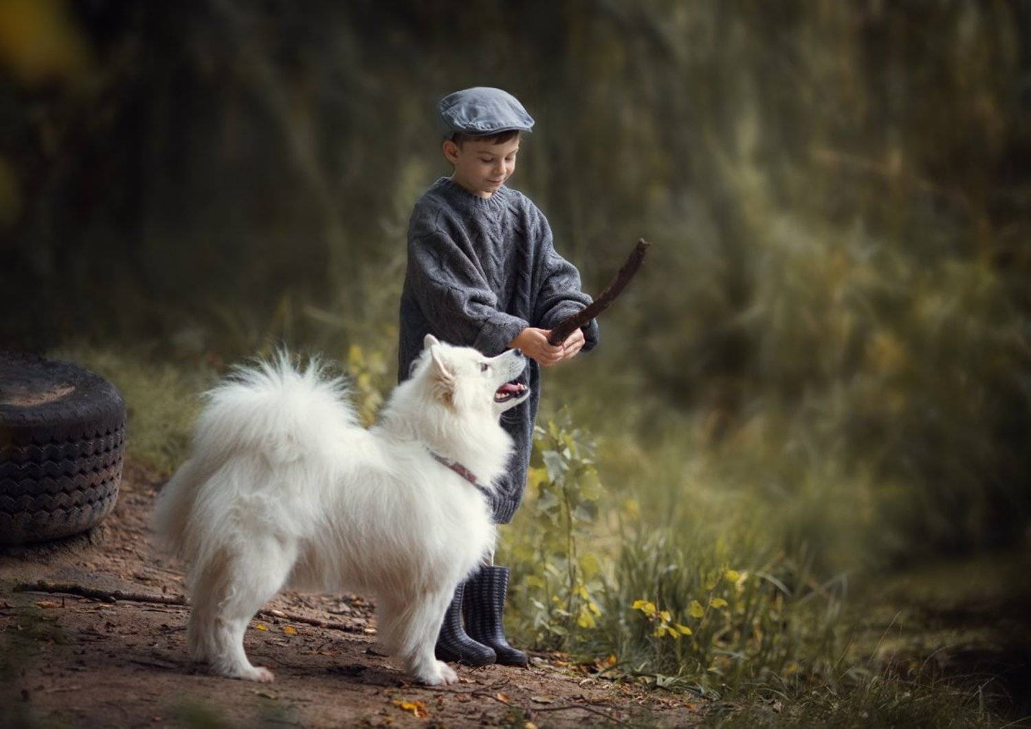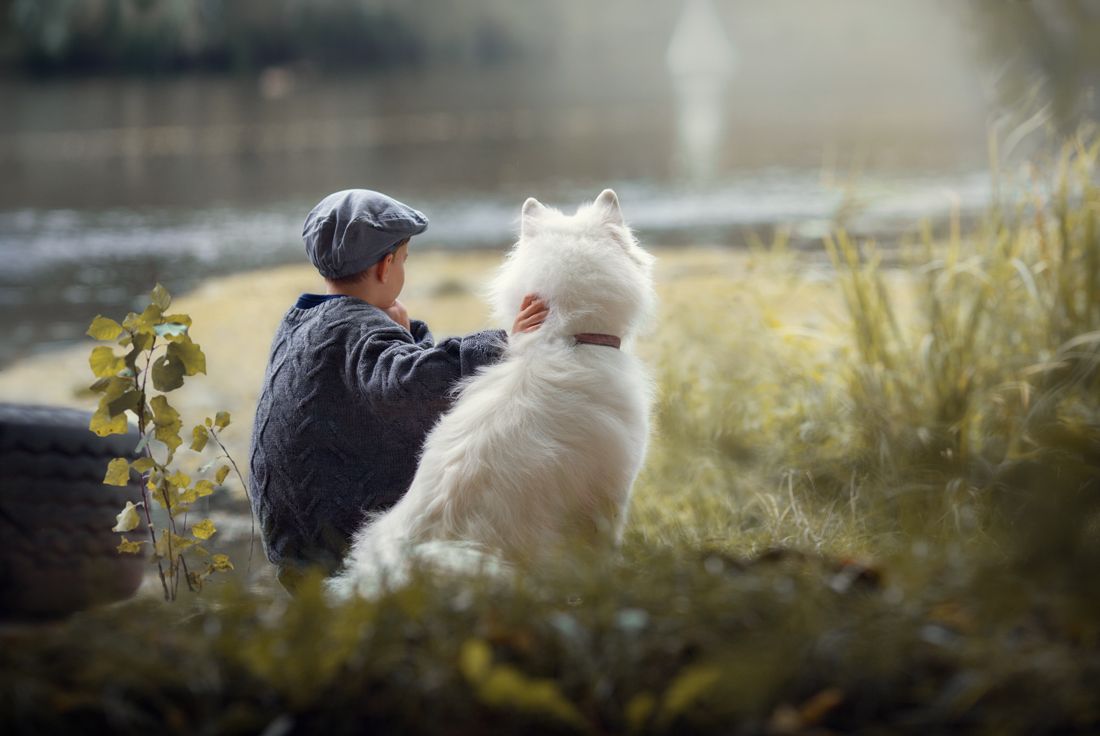 мальчик и собакасамоед