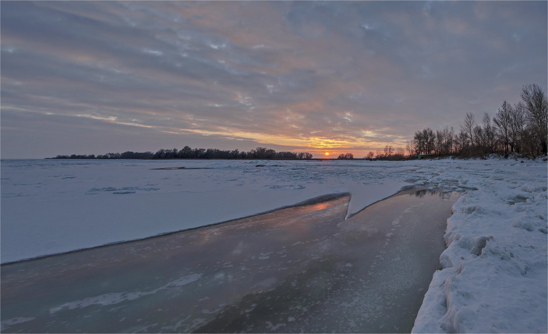 зима, рассвет, река, днепр, каховка, снег, лёд, Валерий Наумов