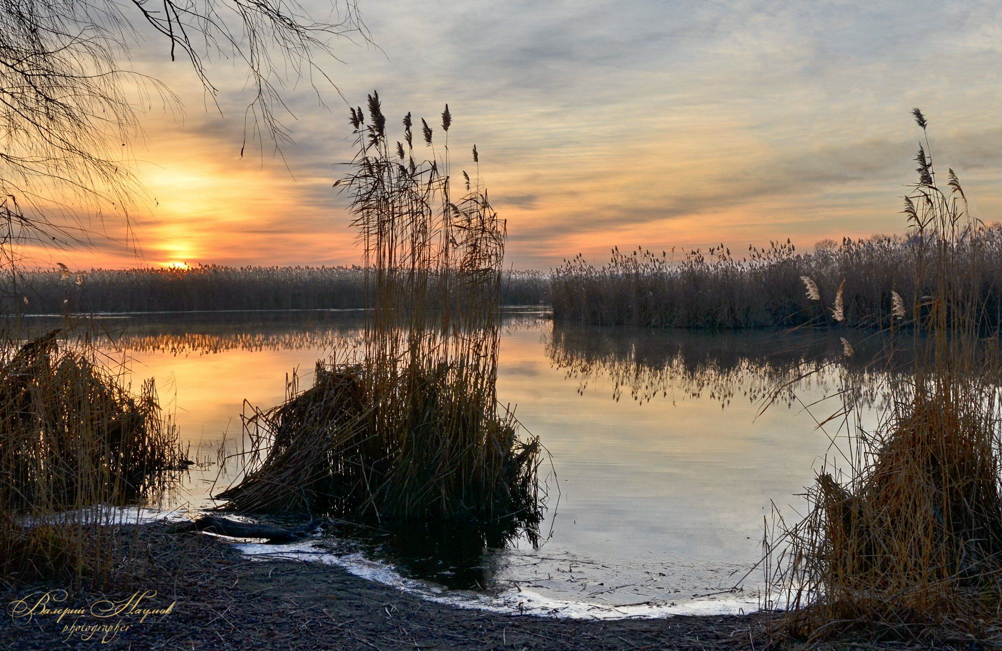 утро, рассвет, река, восход, зима, январь, плавни, камыш, Валерий Наумов