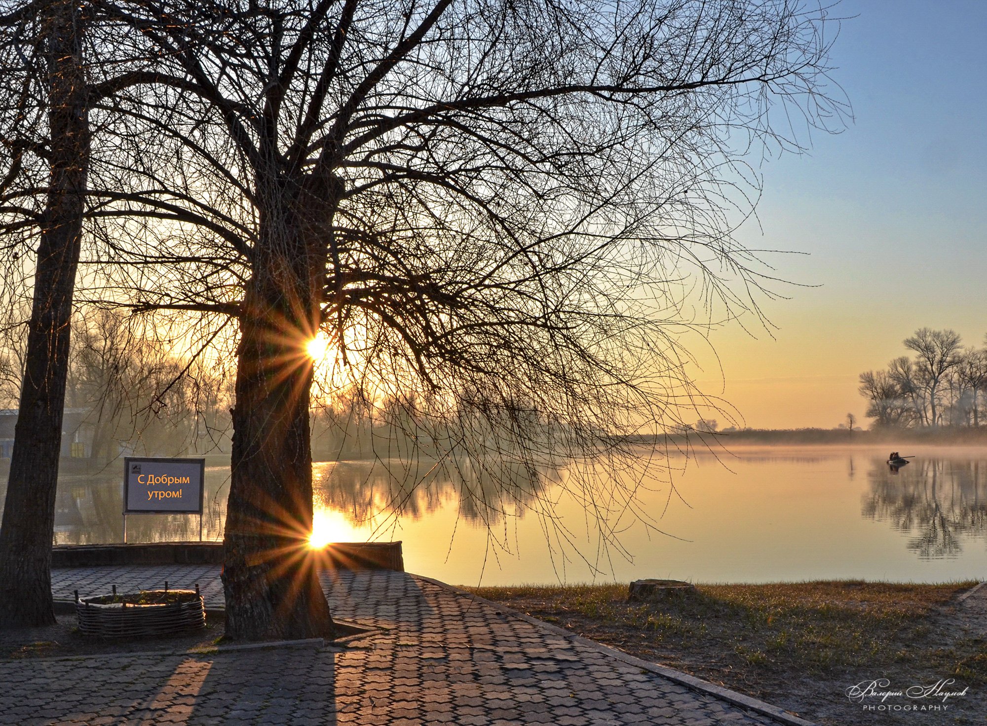 утро, восход, солнце, лучи, апрель, туман, Валерий Наумов