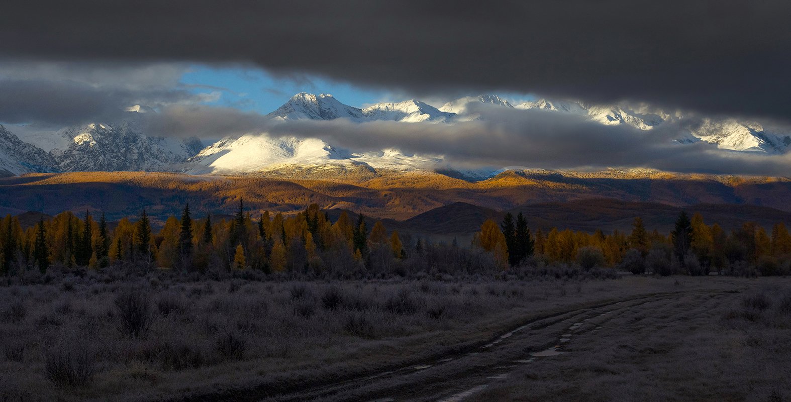 Тем временем тучи понемногу расступались. Первые лучи солнца стали проникать на склоны и вершиы заснеженных гор Северо-Чуйского хребта. От этой картины было трудно оторвать взгляд, Горы манили и звали быстрее вперед.