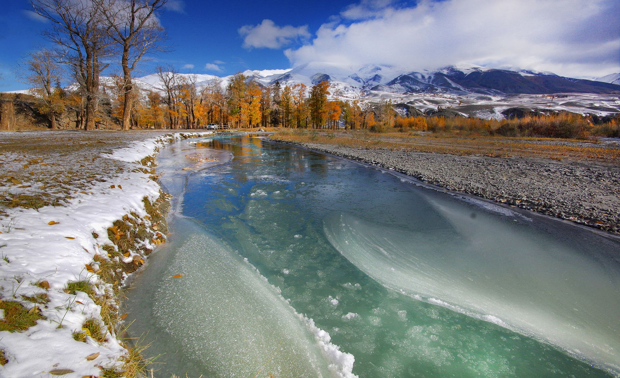 алтай, чуйский тракт, лед, снег, река, вода, осень, горы, чаган-узун, Чичкин Валерий