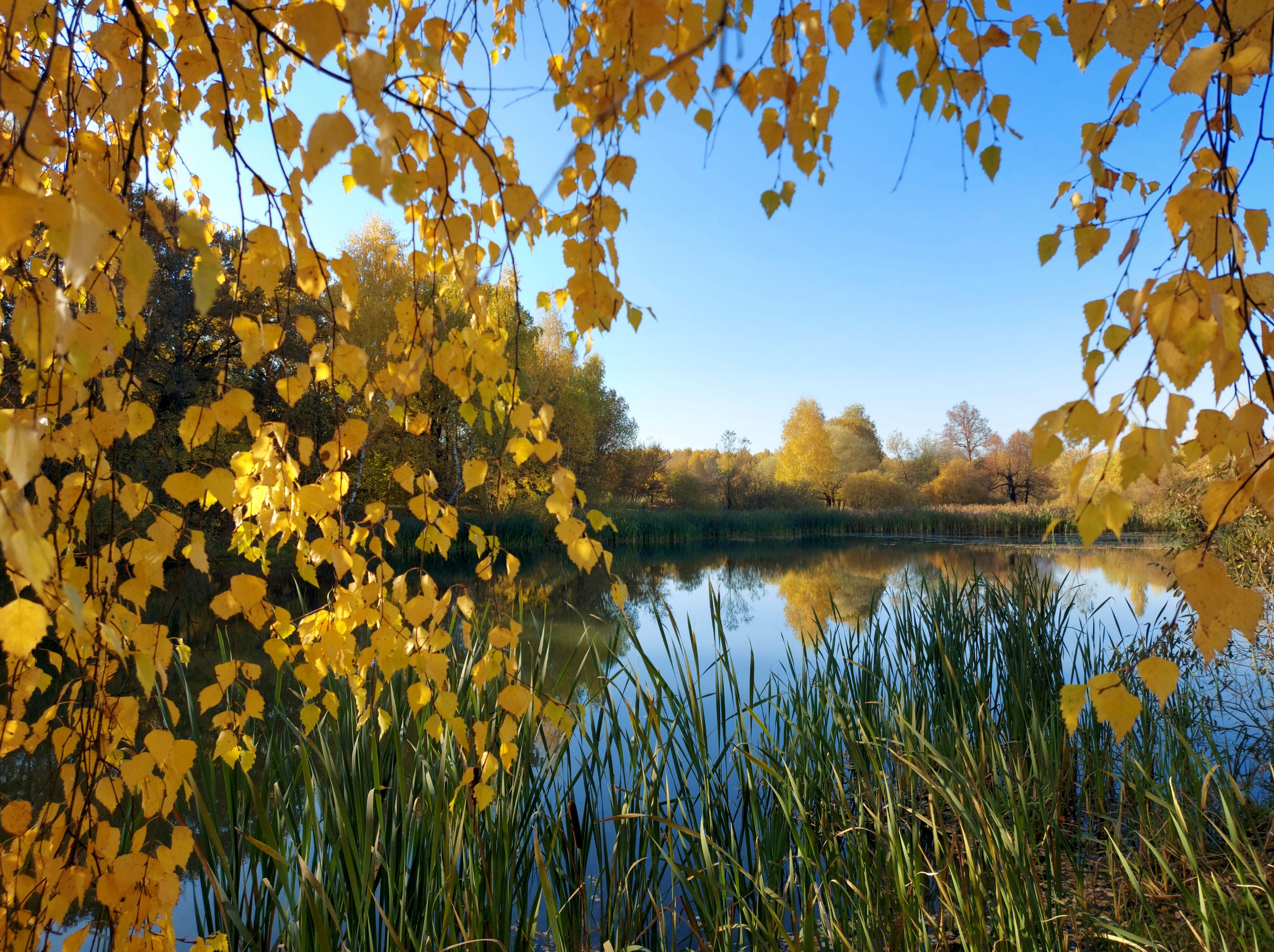 пруд, осень, листья, солнце, небо, Валерий Савостьянов