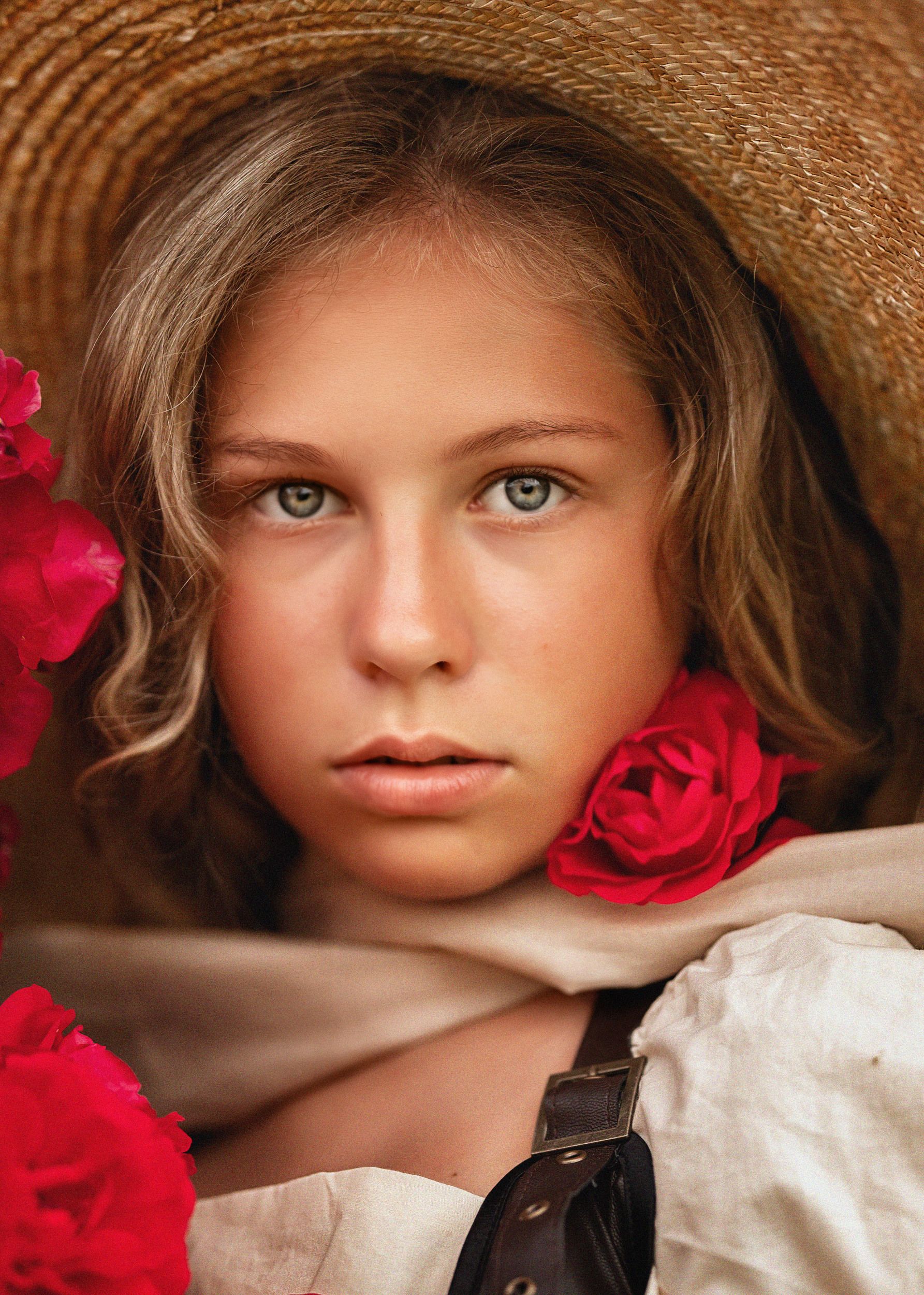 девушка, лето, поле, девушка в шляпе, юность, портрет, розы, Елена Чернигина