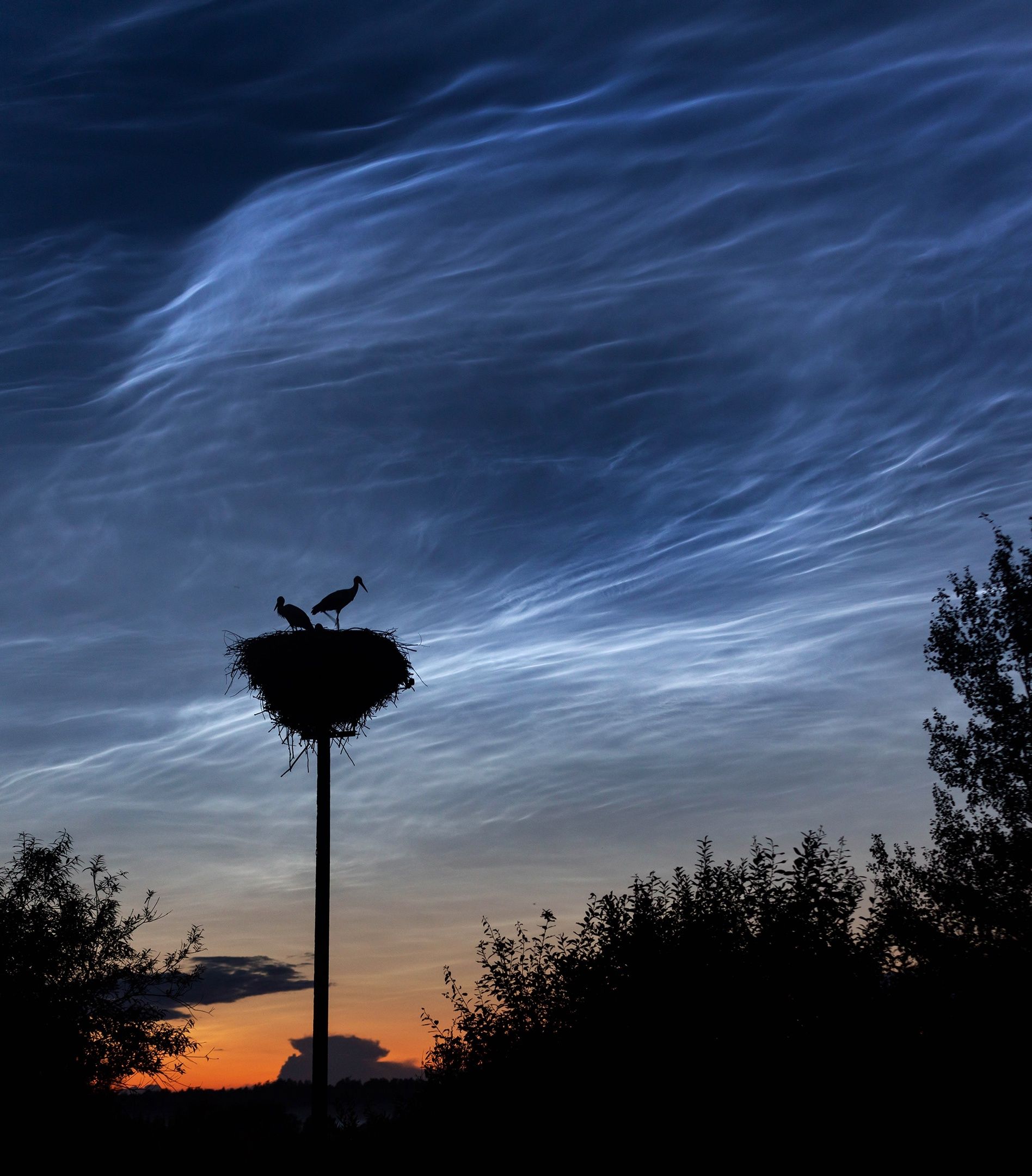 ночная съемка, серебристые облака, птицы, аисты, Павел Ващенков