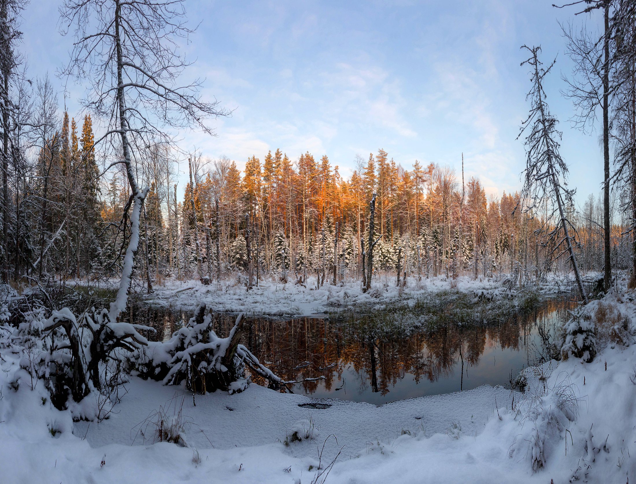 болото, река, зима, снег, бобры, Павел Ващенков