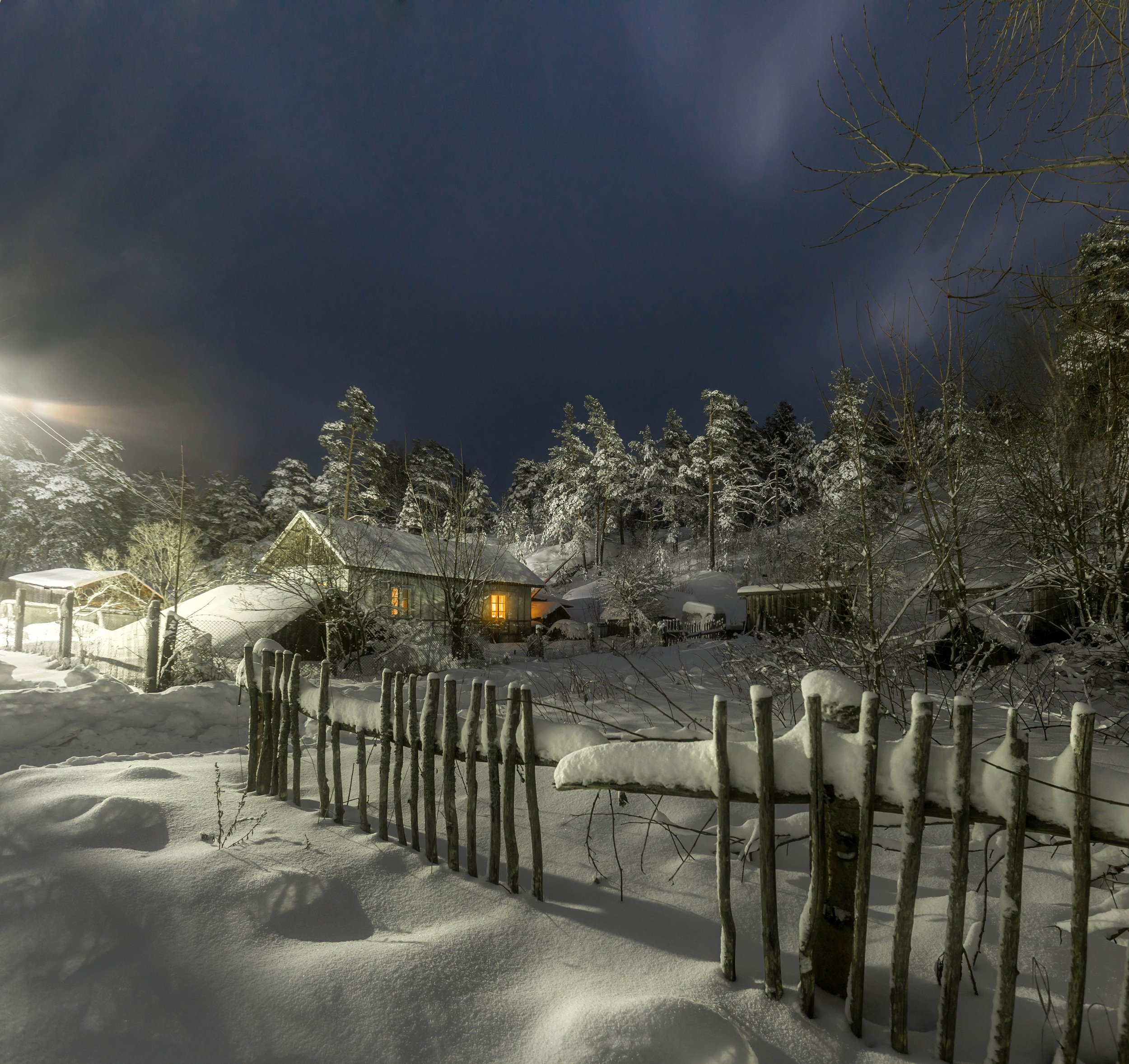 деревня, карелья, ночь, снег, зима, пейзаж , россия, Павел Ващенков
