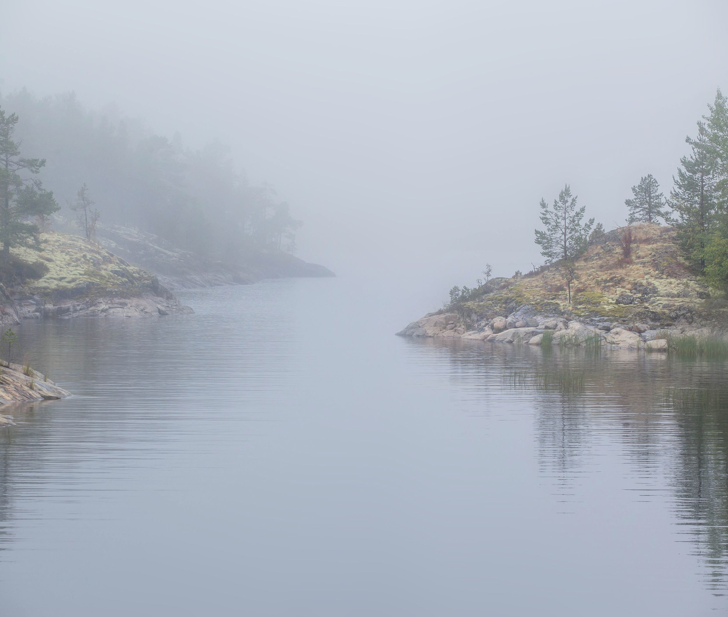 Ладожское озеро, Карелия, туман, острова, шхеры, минимализм, черно белое, монохром, штиль, север, Павел Ващенков