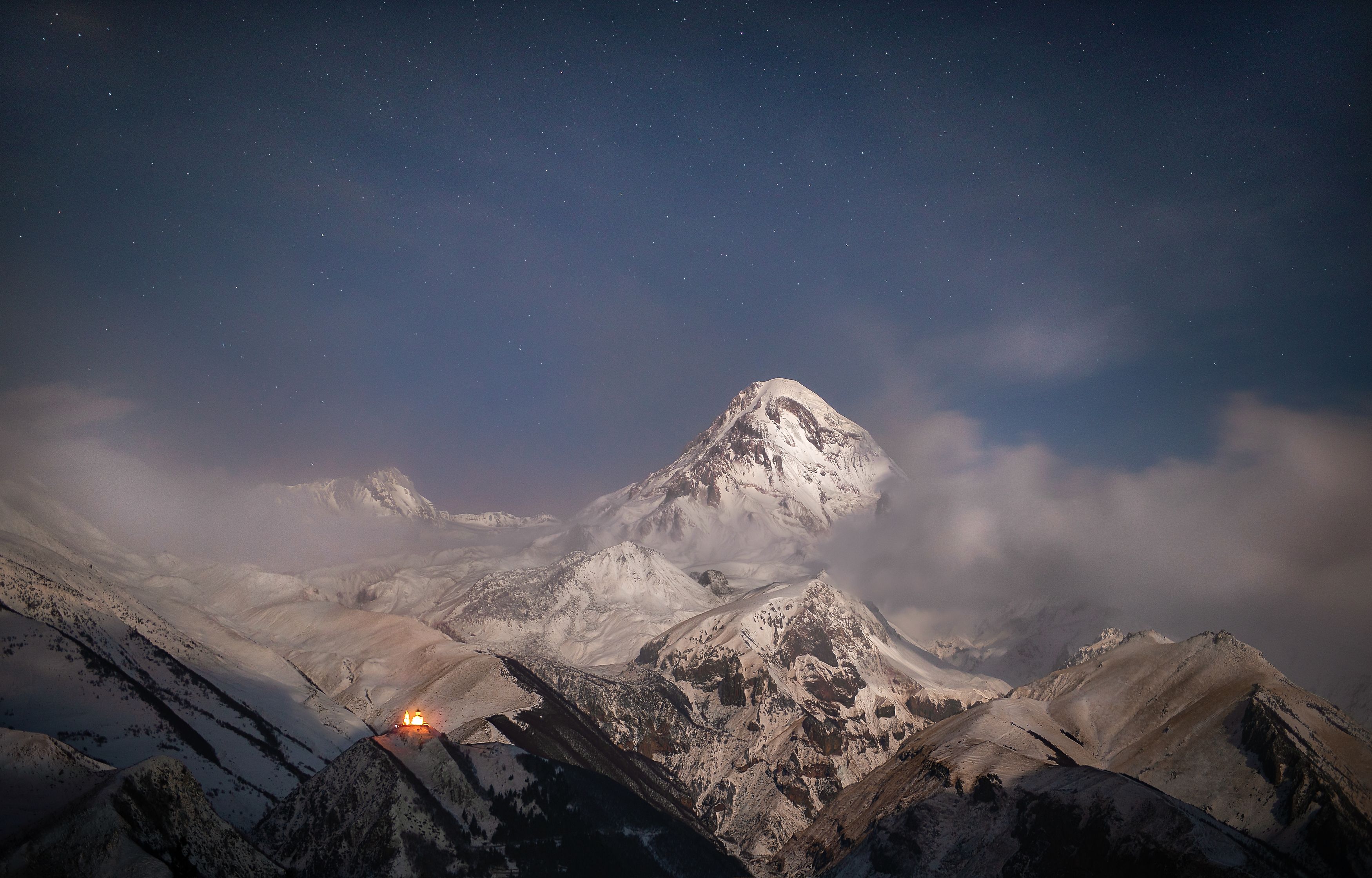 Georgia, landscape, nature, night, long exposure, mountains, winter, snow, Helen Vasilieva