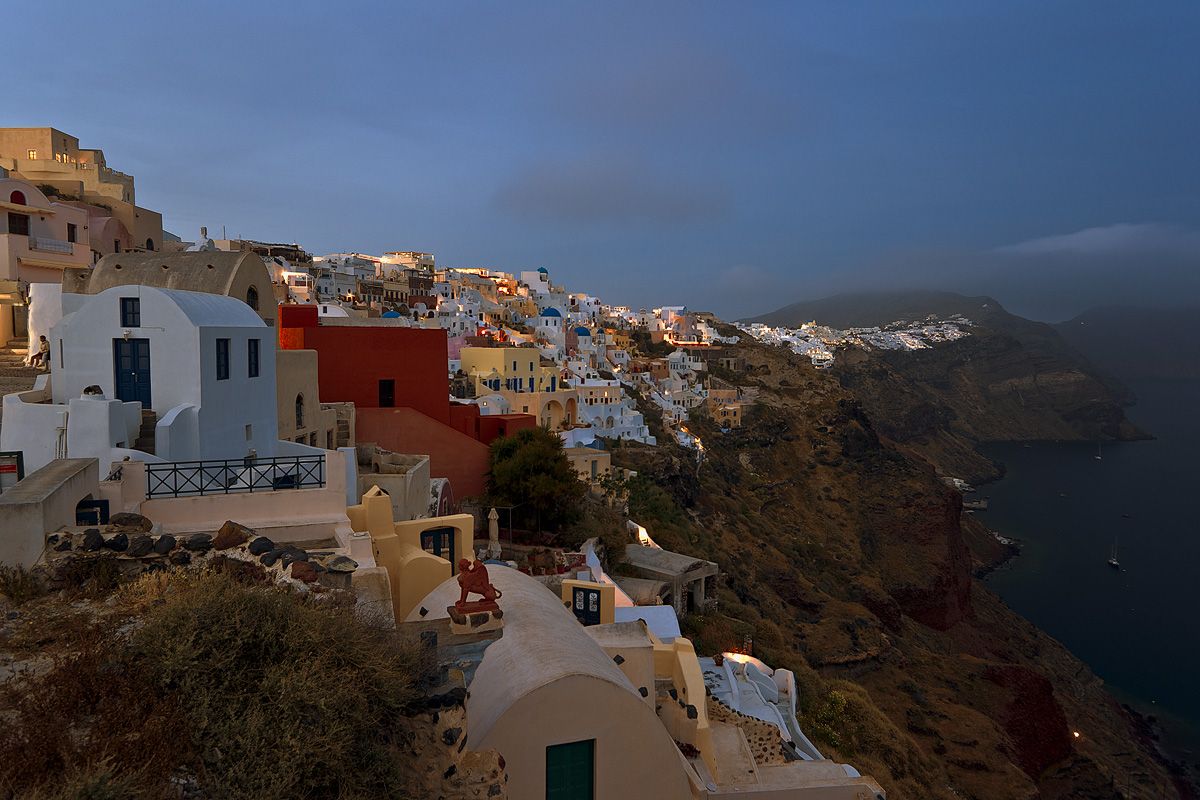 В этот день как всегда, люди занимали места, чтобы снять "самый красивый закат на Земле", но ни одного не было с треногой и не был занят камень, на который можно было поставить треногу, и встав в позу "зю", снимать закат! Этим я и воспользовался. Солнце перед самым закатом свалилось в тучи, и часть публики просто ушла, не зная, что самое интересное будет после момента заката, когда начнется "золотой час"... И тут произошел взрыв света. Что и удалось заснять