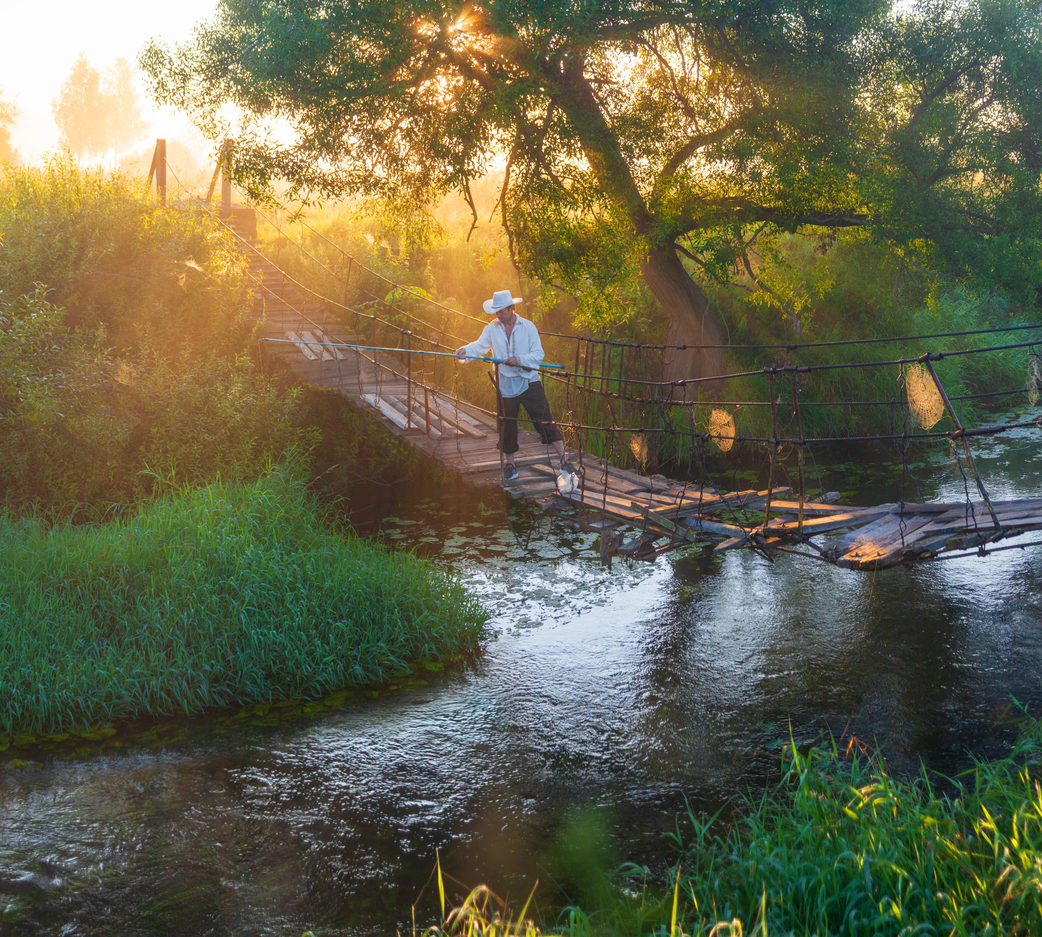 утро, река, лето, рыбак, Свистков Александр