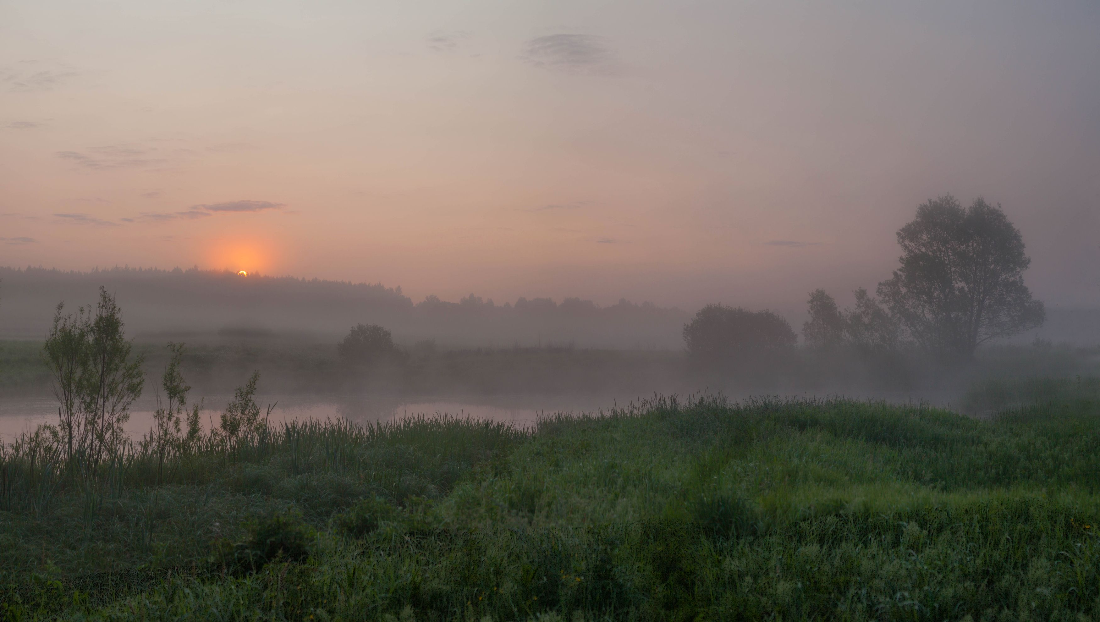 лето, пруд, лес, рассвет, Свистков Александр
