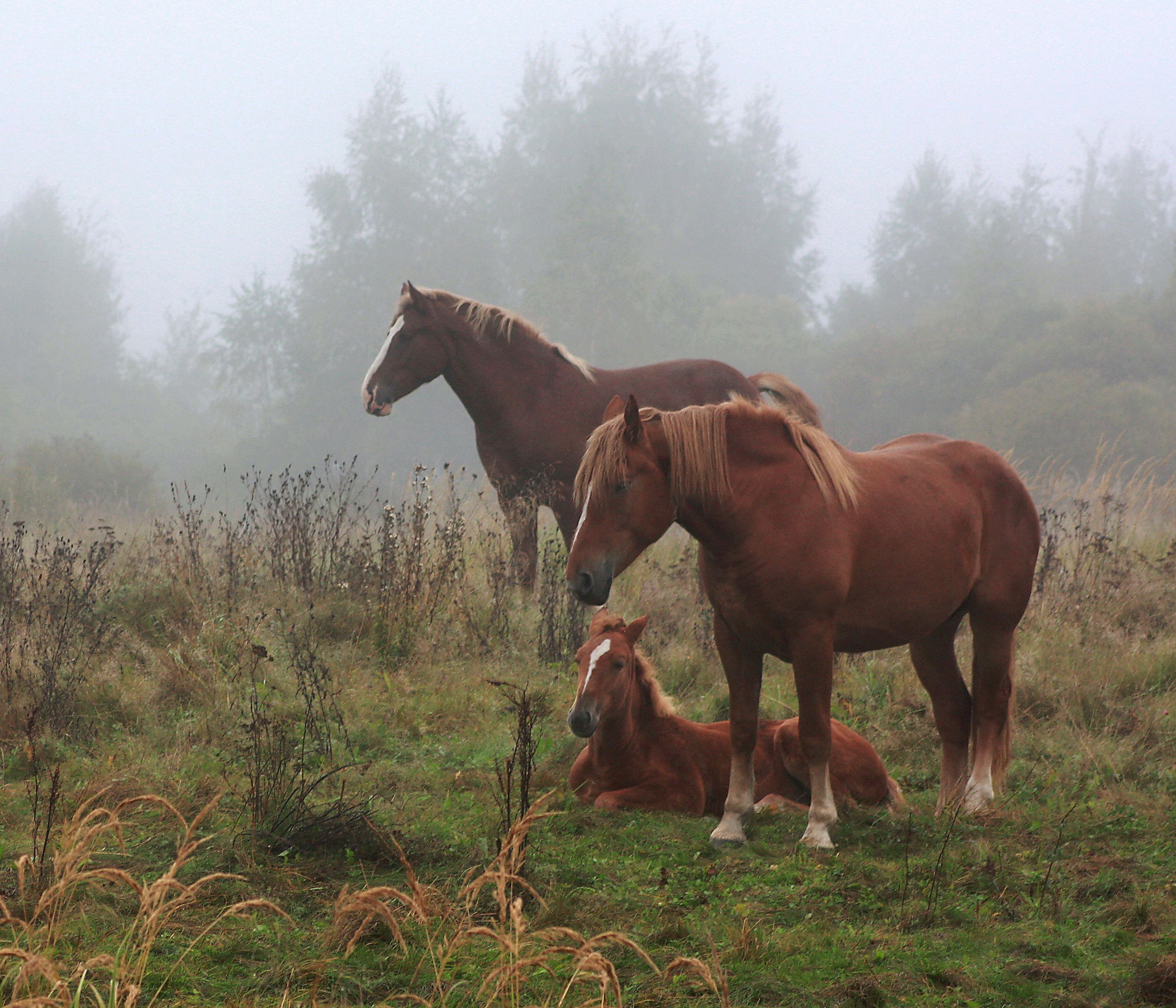 лошади, осень, туман, Александр Свистков