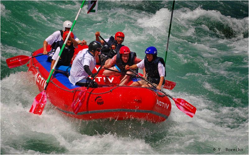 В этом случае - на Чилике, 3 степень сложности. Отчаянные головы даже по Чарыну сплавляются, а это 6-я, максимальная степень. Да, Аня, по секрету скажу: это рафтинг, а не ралли ;О)))