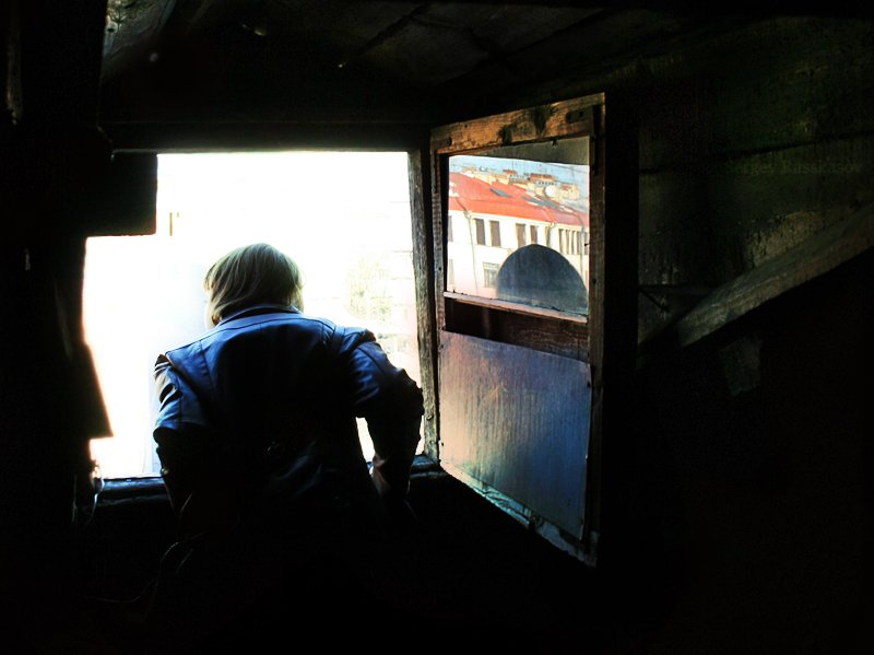 окно, чердак, крыши, силуэт, свет, отражение, петербург, Сергей Рассказов