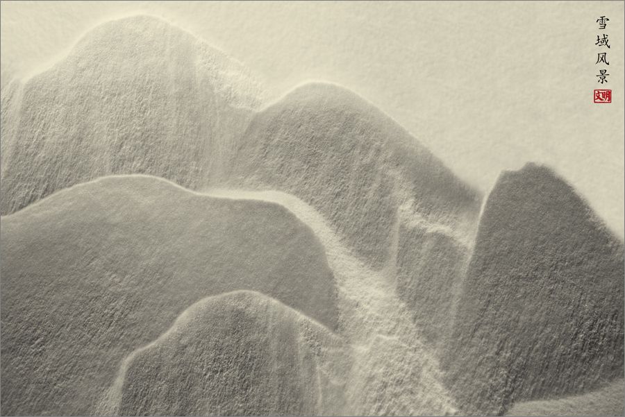 Это фотографии выветренного снежного наста с неповторимыми рельефами, напоминающими горные пейзажи. Последующее тонирование придало эффект китайской живописи «шань шуй».