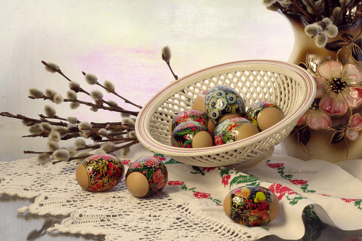 Пасхальные яйца, Пасхальный натюрморт, Праздник, Вера Павлухина