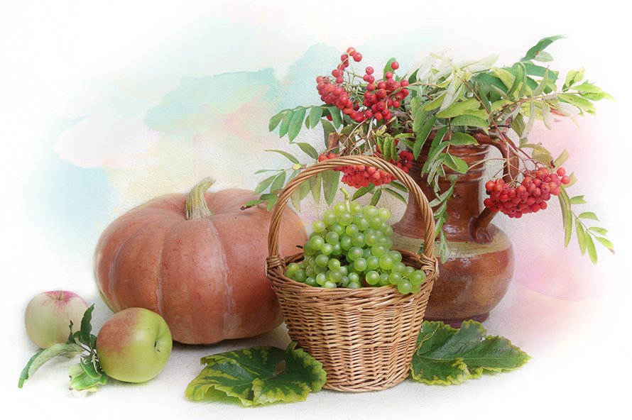 осень,яблоки,груши,виноград,натюрморт,вера павлухина ,, Вера Павлухина