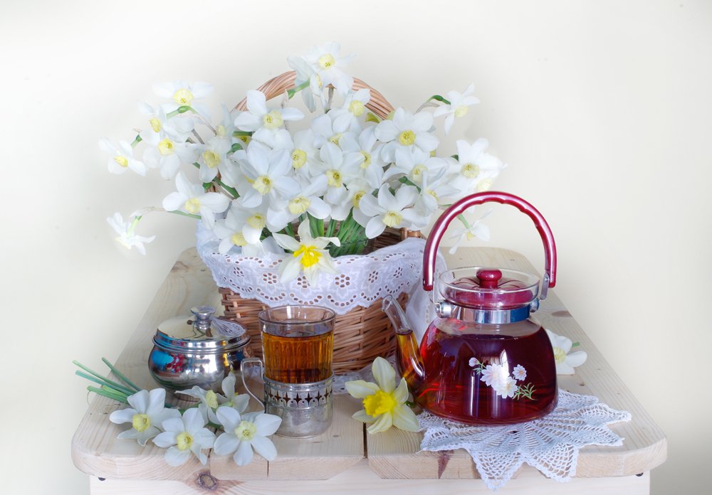 весна,чай ,натюрморт,чайник,, Вера  Павлухина