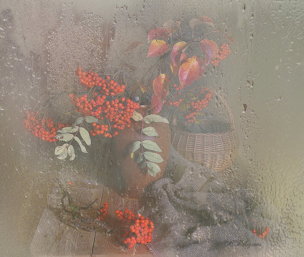 осень,капли,рябина,натюрморт,вера павлухина,, Вера  Павлухина