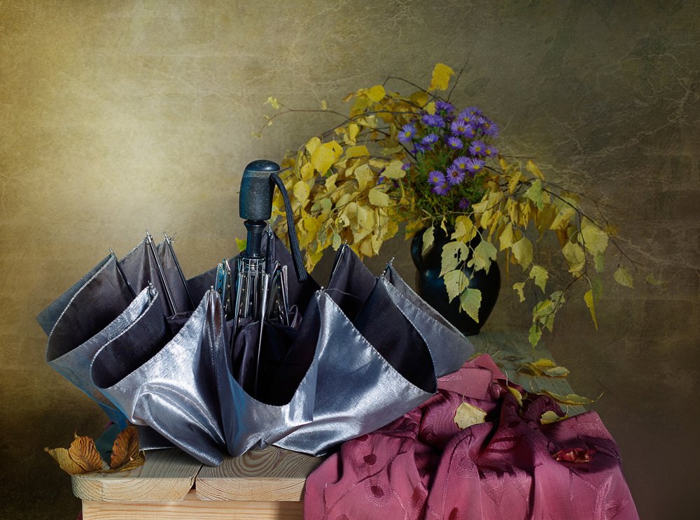 зонтик , серый , листья , осень , вера павлухина ,, Вера  Павлухина