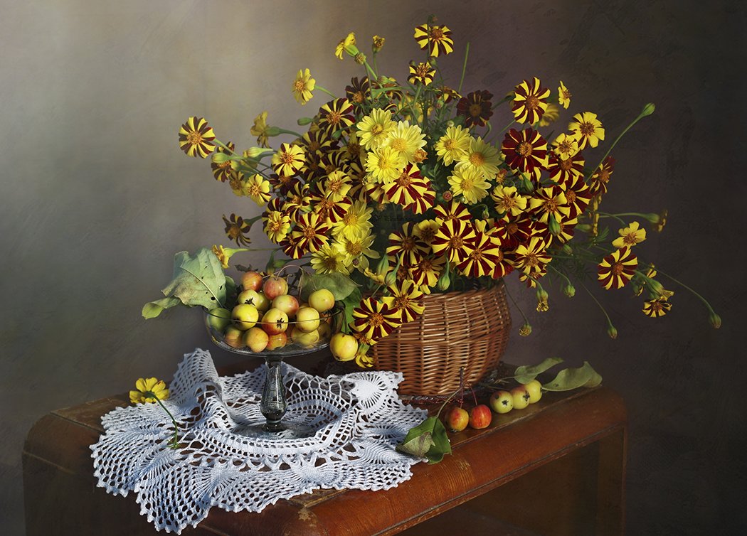 натюрморт,цветы,яблоки,осень,вера павлухина,, Вера  Павлухина